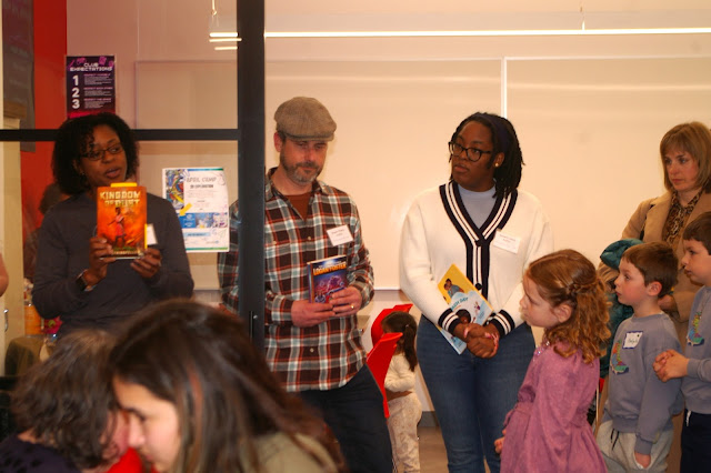 Tuesday, March 25th, seemed like an ordinary weekday night, but if you happen to be at The Club or strolling through the mall, there was something much more extraordinary to discover: 13 local authors (which included 3 author/illustrators), 1 local kids art organization: Kidcasso, tons-o-snacks, 100+ free books to give away to kids ages toddler (babies, too:) to teen, notebooks to write your own story in, bookmarks, so many fun activities and a wonderful group of volunteers and staff from The Club who made everybody feel so welcome. Shout out to our volunteers: Laura-Marie, George, Emily, Ellen, Kerri and Lisa--and to the amazing BGC Staff: Casey, Patrick, Daved, Aiden and JW.For any kids who wanted to read a few other books from the event or who want to go on to read every single book from the event--they can! We'll be donating copies of book to the Wakefield Public Library and since they are part of the NOBLE Network of libraries, the books are available to any town library in the system. What books were there, you ask?